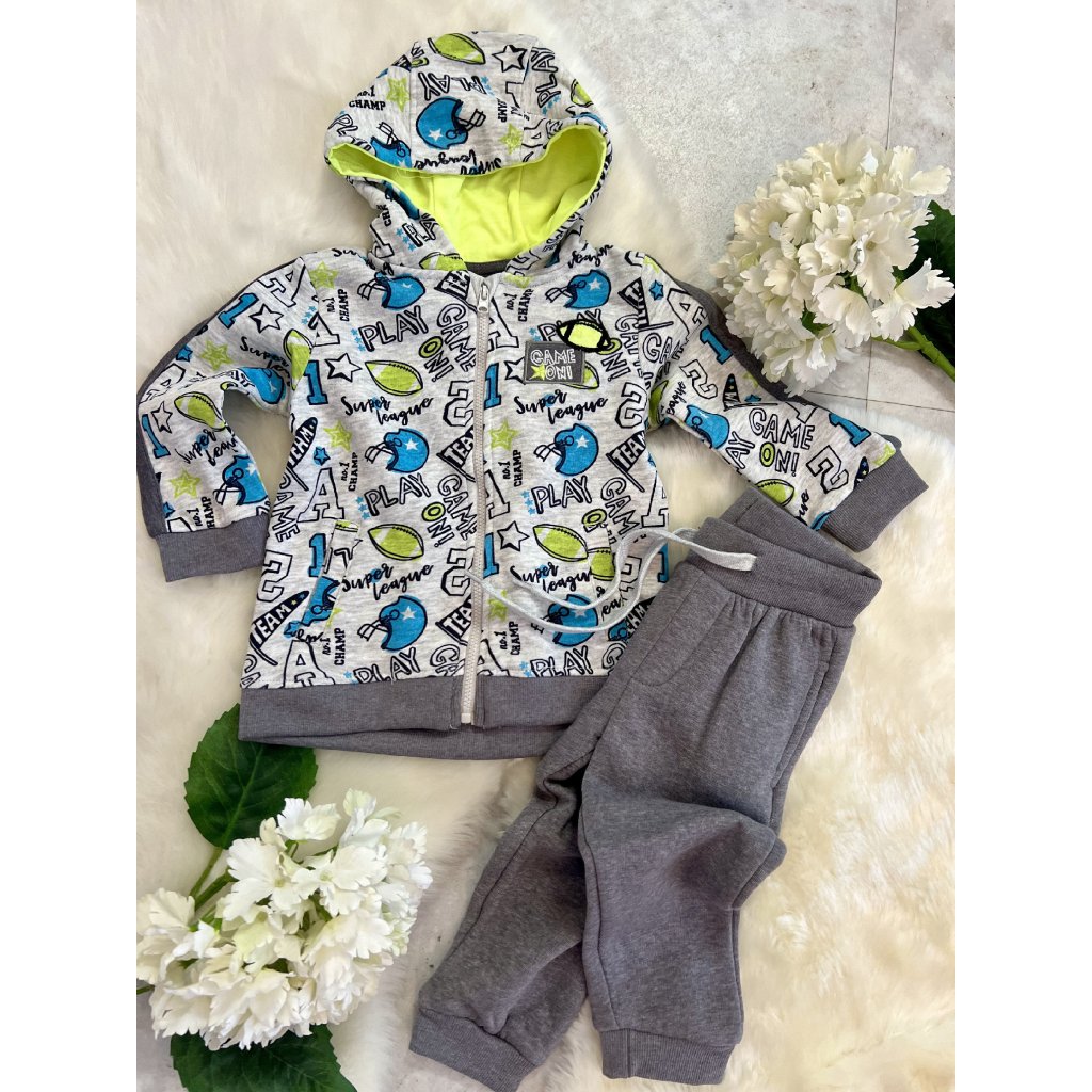 Chlapčenská tepláková súprava je ideálnou voľbou pre najmenších chlapcov, ktorí potrebujú pohodlie počas celého dňa. Súprava pozostáva z mäkkých teplákov a mikiny na zips s kapucňou, takže je praktická na každodenné nosenie aj prechádzky.
