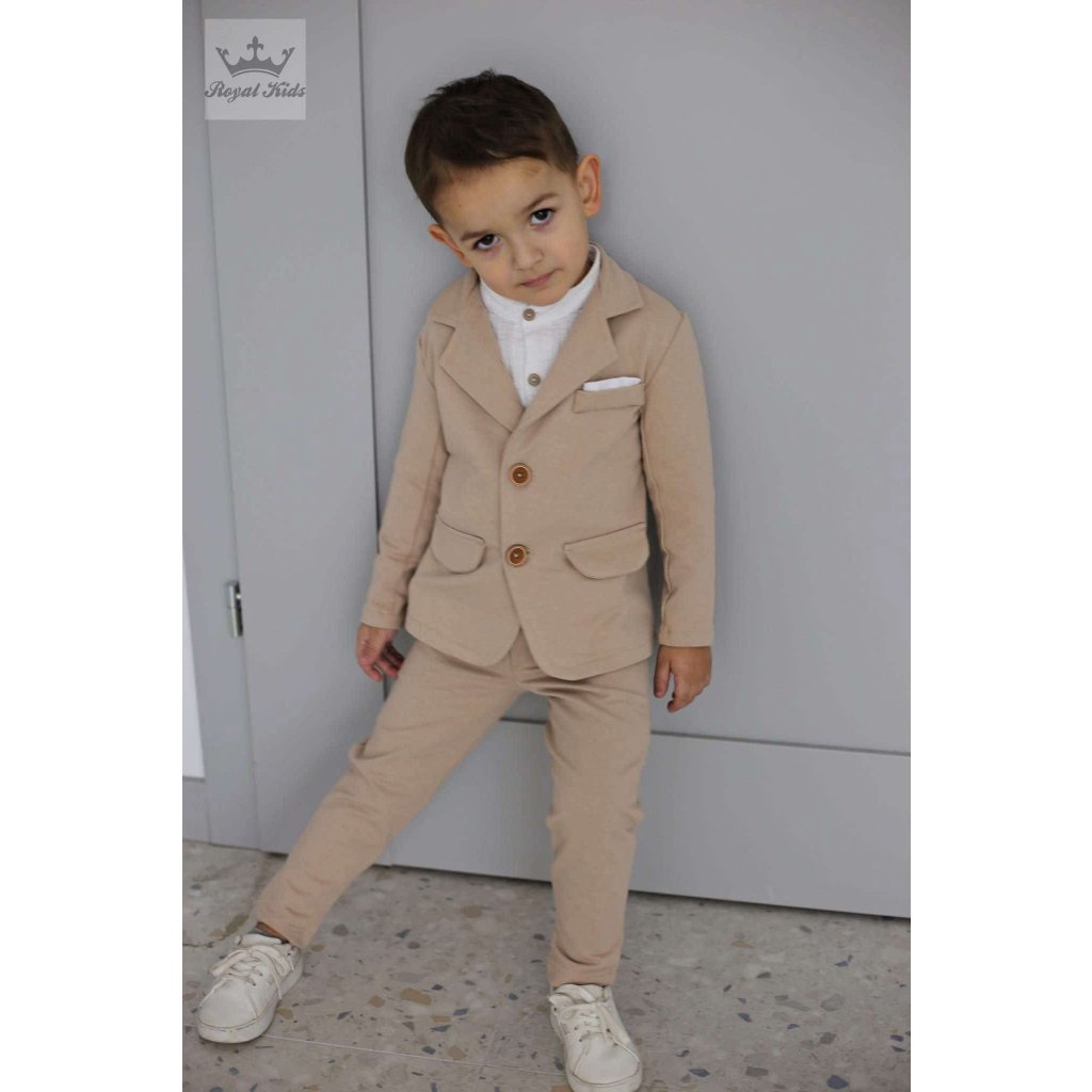 2 dielny  bavlnený oblek/set sako+nohavice - Béžová (Veľkosť 152/158)