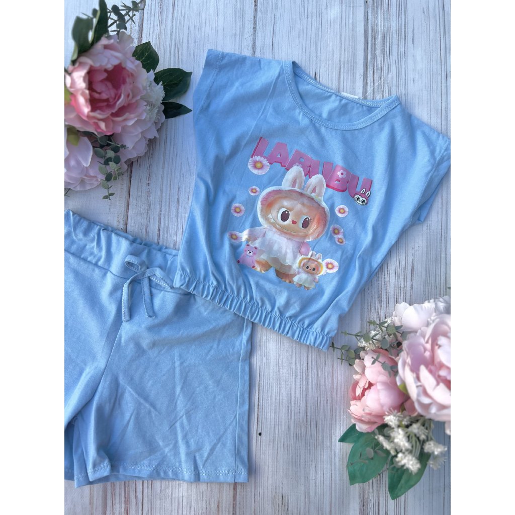 2 dielny dievčenský letný set LABUBU - Modrá (Veľkosť 152/158)