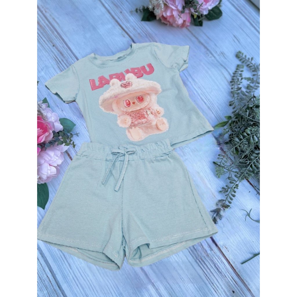 2 dielny dievčenský letný set LABUBU - Tyrkysová