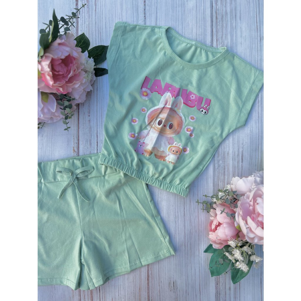 2 dielny dievčenský letný set LABUBU - Zelená