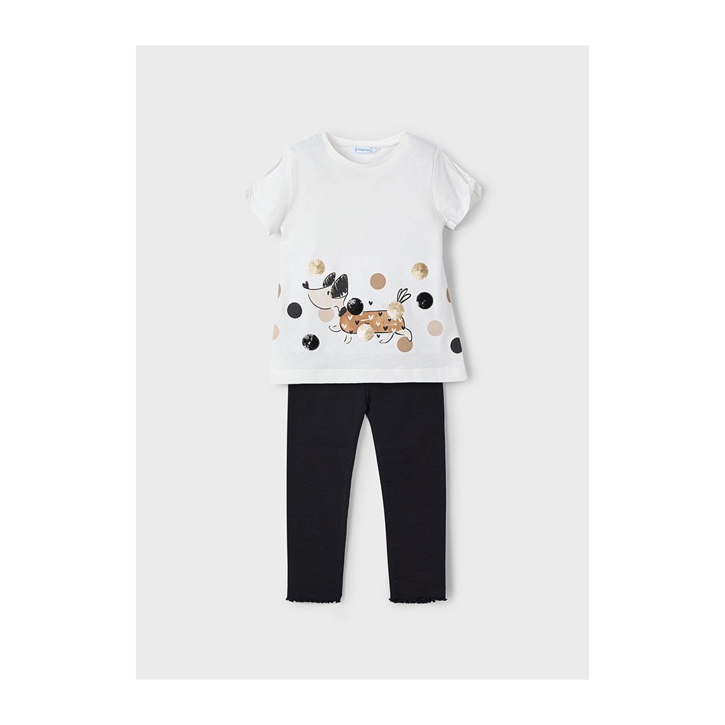 Pohodlná 2-dielna dievčenská súprava pozostáva z pružných legín a ľahkého krátkorukávového trička, ktoré spolu vytvárajú ideálny outfit na každý deň. Mäkké materiály zabezpečujú príjemné nosenie, či už na doma, do školy alebo na voľný čas. Jednoduchý a praktický set je perfektnou voľbou pre malé slečny, ktoré milujú pohodlie a voľnosť pohybu.