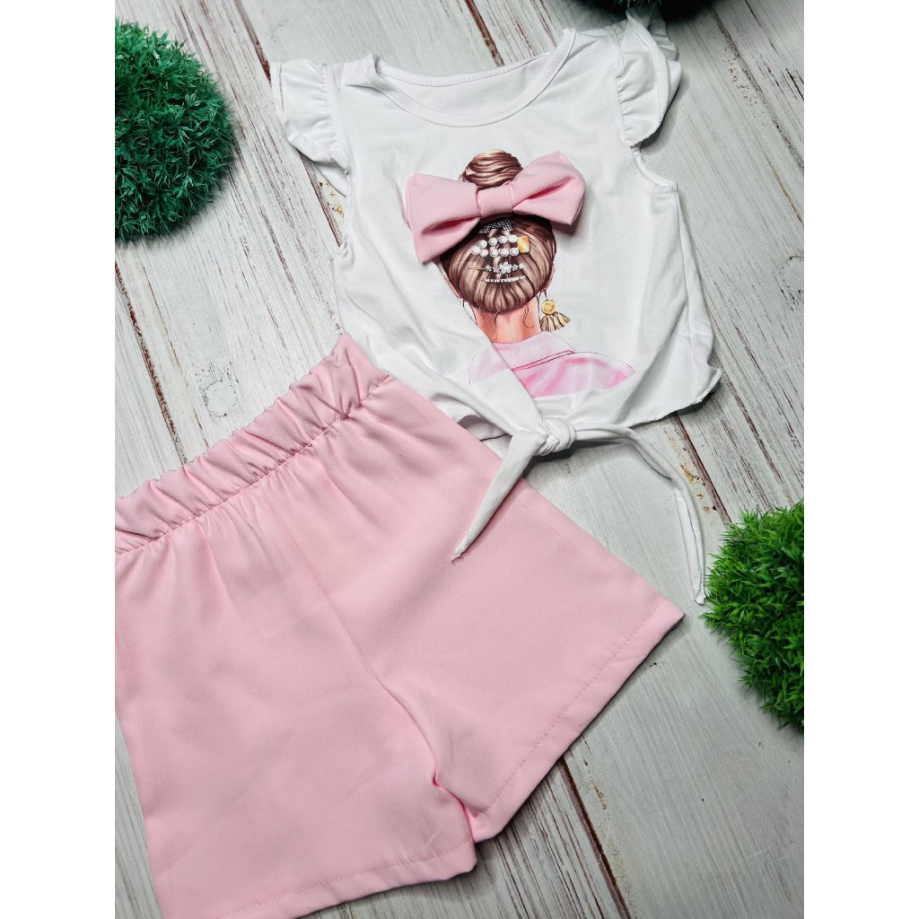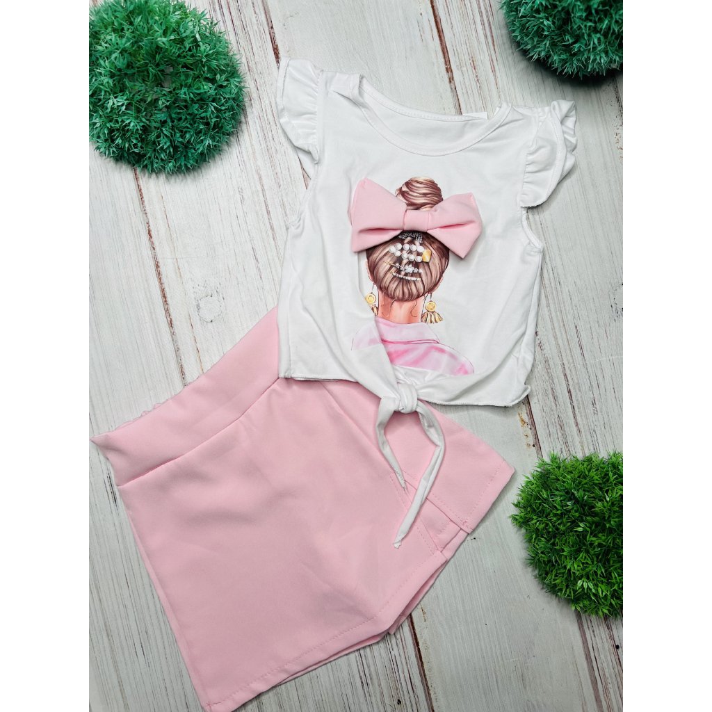 Štýlový a pohodlný letný set, ktorý spája praktickosť s roztomilým vzhľadom. Tento dvojdielny komplet obsahuje tričko s krátkym rukávom a sukňové kraťasy, ktoré poskytujú voľnosť pohybu a zároveň pôsobia elegantne ako sukňa.