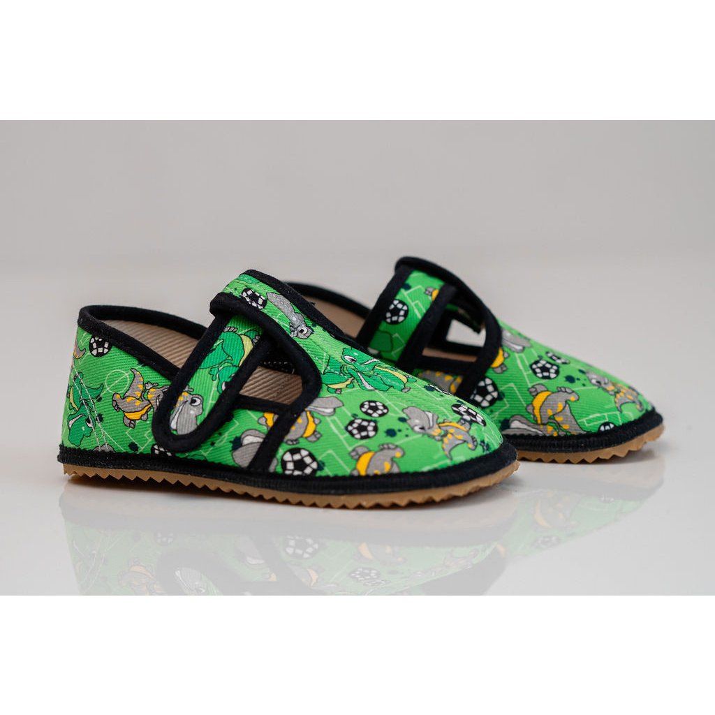 Sú ľahké, mäkké a veľmi flexibilné pre deti od českého výrobcu BEDA. Vyznačujú sa tenkou, ohybnou podrážkou bez päty (zero‑drop), ktorá umožňuje nohe prirodzene sa pohybovať a ohýbať. Vyrobené sú z textilného materiálu s protišmykovým vzorom na podrážke, takže sú vhodné na domáce nosenie, do škôlky či školy. Zapínajú sa na suchý zips, vďaka čomu sa ľahko obúvajú a dajú sa dobre prispôsobiť tvaru nohy.