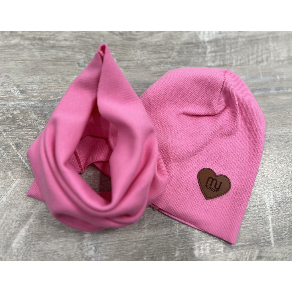 Bavlnená čiapka + tunelový šál - Ružová