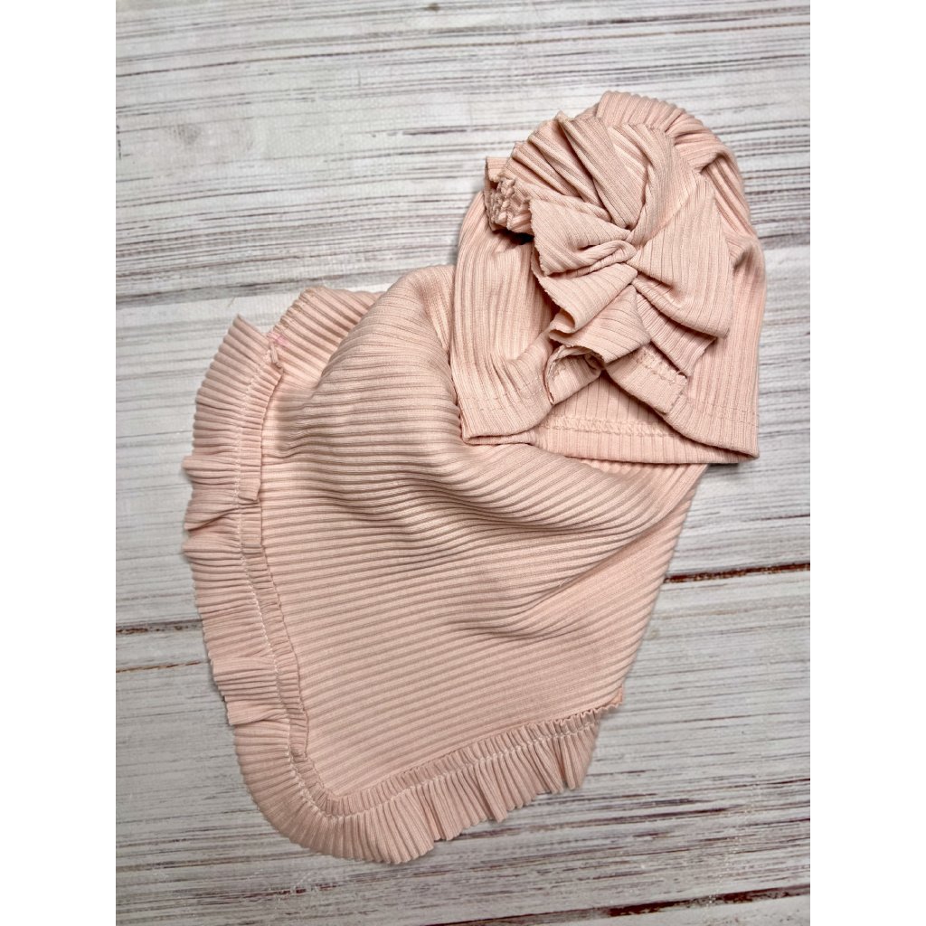 Bavlnená dievčenská čiapka s nákrčníkom - Ružová