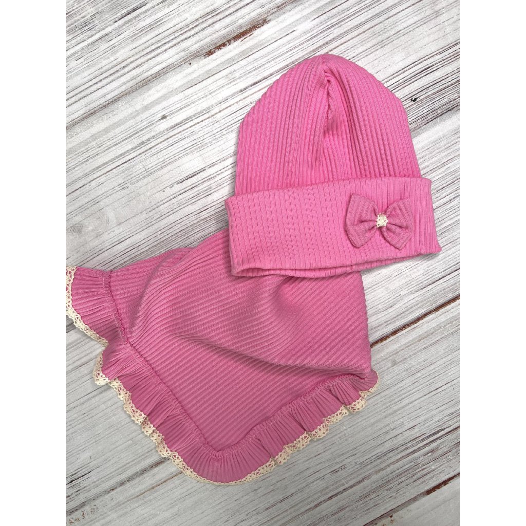 Bavlnená dievčenská čiapka s nákrčníkom - Ružová