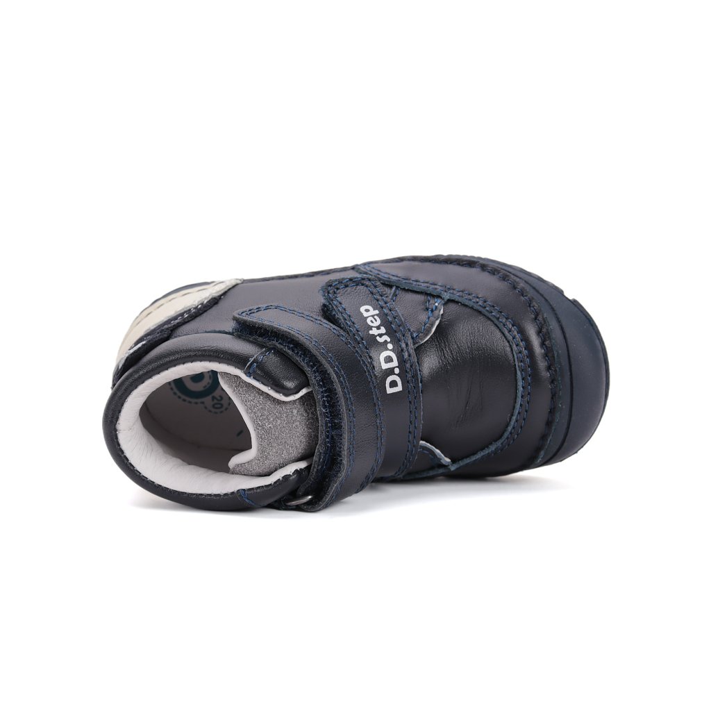 KLASICKÉ, ORTOPEDICKÉ: Topánky sú mierne vystužené, s tvarovanou ortopedickou vložkou. Každý produkt D.D.Step je vyrobený z pravej, kvalitnej hovädzej kože, aby sa zabezpečilo najlepšie prispôsobenie detskej nohe. Predná časť topánky je navrhnutá tak, aby chránila prsty, umožnila ich správny rast a zároveň zvýšila odolnosť obuvi. Formovaná výstuha poskytuje oporu a dlhotrvajúce spevnenie v oblasti päty. PVC výstuž je umiestnená medzi podšívkou a zvrškom, takže sa priamo nedotýka nohy, ale správne fixuje pätovú kosť.