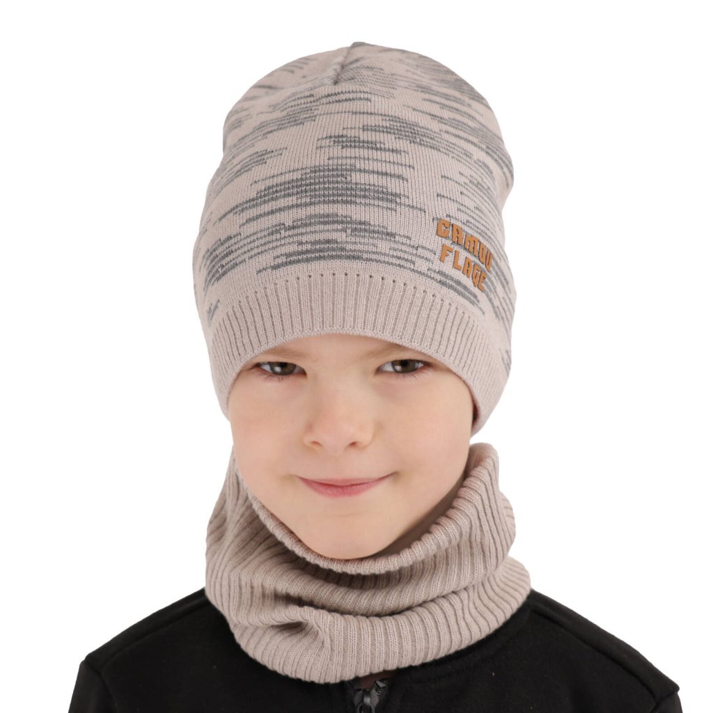 Chlapčenská prechodná čiapka + tunelový šál - Béžová