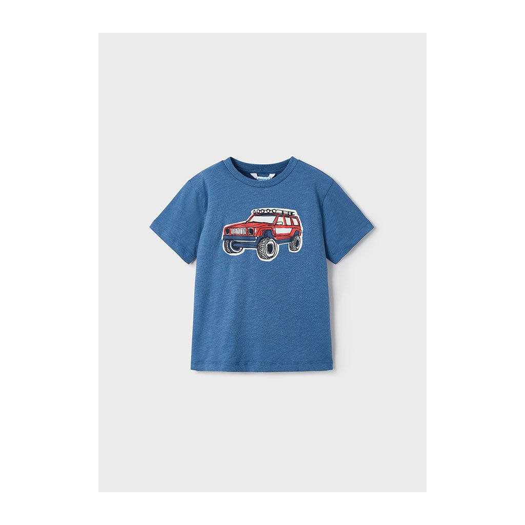Štýlové chlapčenské tričko MAYORAL, ktoré zaujme originálnou potlačou auta a dodá outfitu energický, hravý vzhľad. Príjemný materiál a pohodlný strih zaručujú komfort počas celého dňa – ideálne na školu, ihrisko aj bežné nosenie.