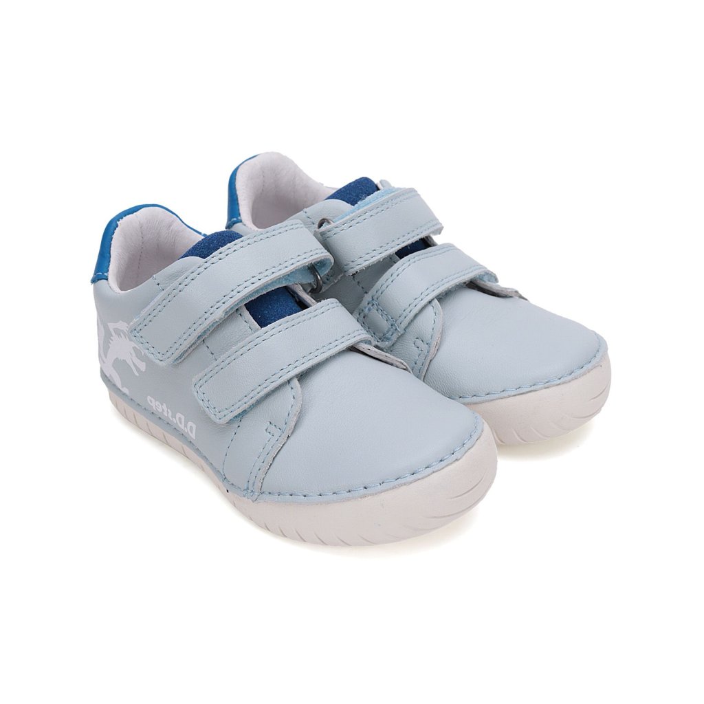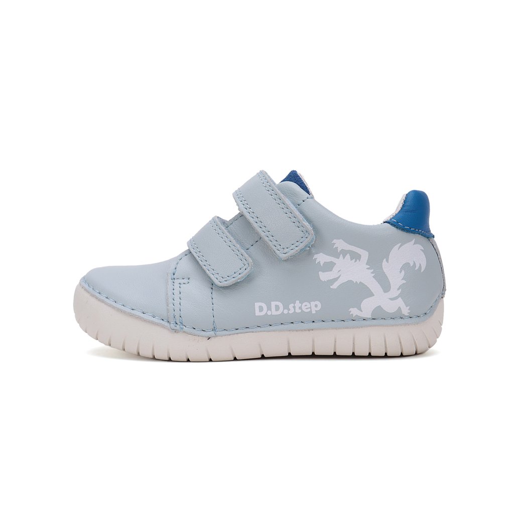 Kožená detská obuv, prechodné topánky zn. D.D.STEP s ortopedickou vložkou a tvarovanou klenbou. Obuv je vhodná pre najmenšie detičky, ktoré sa učia chodiť, pretože sú mäkkučké, ľahučké a veľmi ohybné. Sú vhodné na prechodné obdobie. Zapínanie je na suchý zips. Vpredu je vyvýšená guma proti okopaniu.