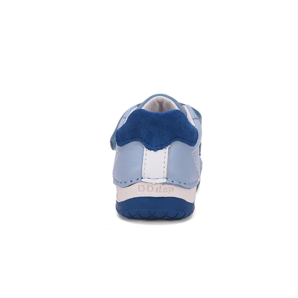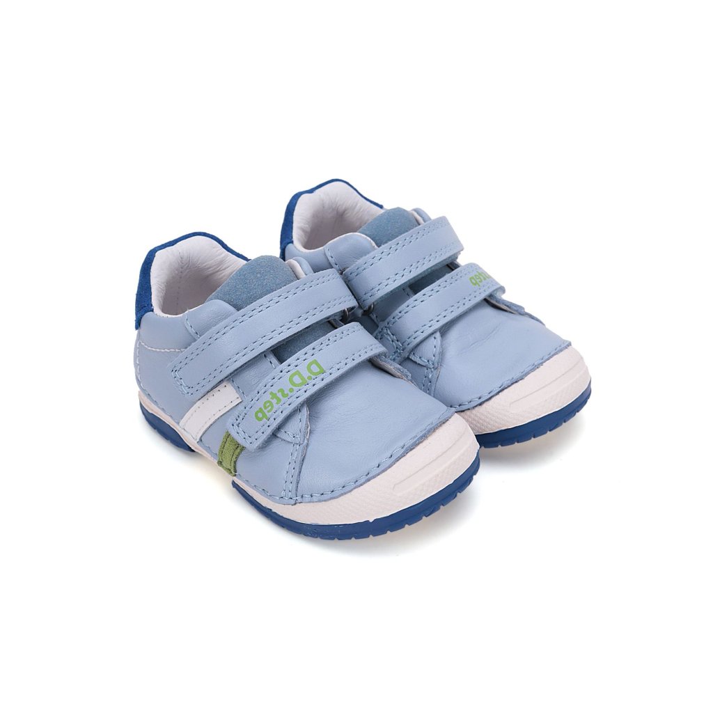 Detská kožená obuv, mäkká-flexibilná podrážka pre pohodlnú chôdzu a praktické zapínanie na suchý zips. Obuv je celokožená s koženou tvarovanou stielkou z mäkkčenej kože najvyššej kvality aby bola pre deti maximálne pohodlná. Podrážka je lepená a aj šitá najmodernejšou 3D technológiou. Obuv D.D.Step je odľahčená.