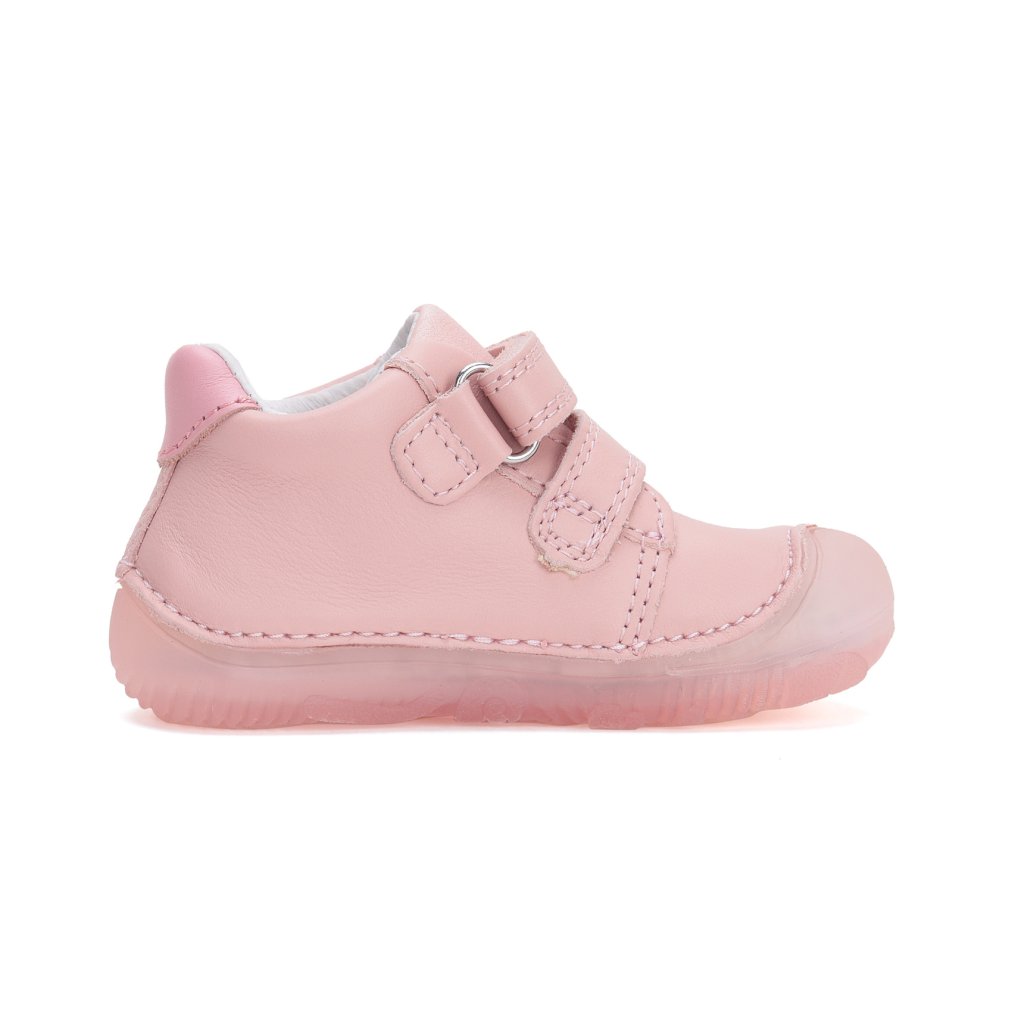 KLASICKÉ, ORTOPEDICKÉ: Topánky sú mierne vystužené, s tvarovanou ortopedickou vložkou. Každý produkt D.D.Step je vyrobený z pravej, kvalitnej hovädzej kože, aby sa zabezpečilo najlepšie prispôsobenie detskej nohe. Predná časť topánky je navrhnutá tak, aby chránila prsty, umožnila ich správny rast a zároveň zvýšila odolnosť obuvi. Formovaná výstuha poskytuje oporu a dlhotrvajúce spevnenie v oblasti päty. PVC výstuž je umiestnená medzi podšívkou a zvrškom, takže sa priamo nedotýka nohy, ale správne fixuje pätovú kosť.