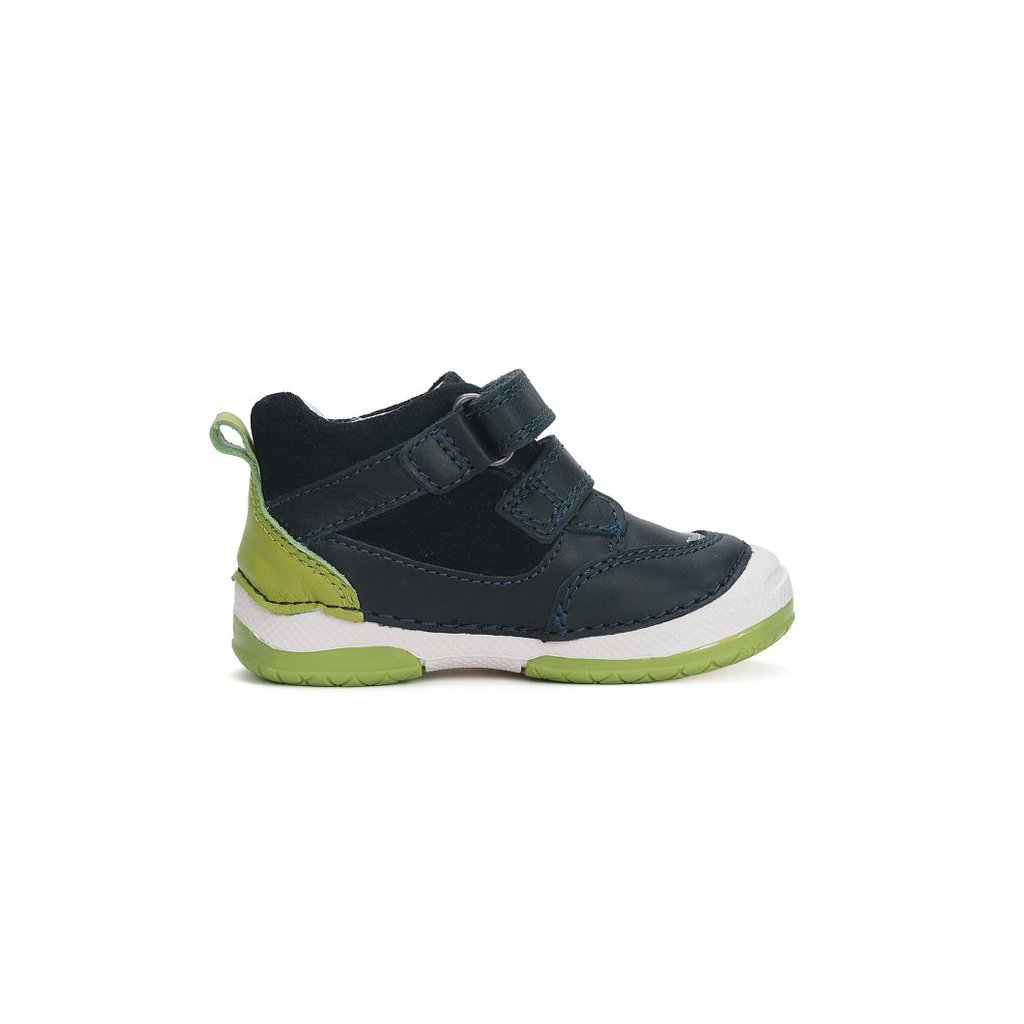 Detská kožená obuv, mäkká-flexibilná podrážka pre pohodlnú chôdzu a praktické zapínanie na suchý zips. Obuv je celokožená s koženou tvarovanou stielkou z mäkkčenej kože najvyššej kvality aby bola pre deti maximálne pohodlná. Podrážka je lepená a aj šitá najmodernejšou 3D technológiou. Obuv D.D.Step je odľahčená.