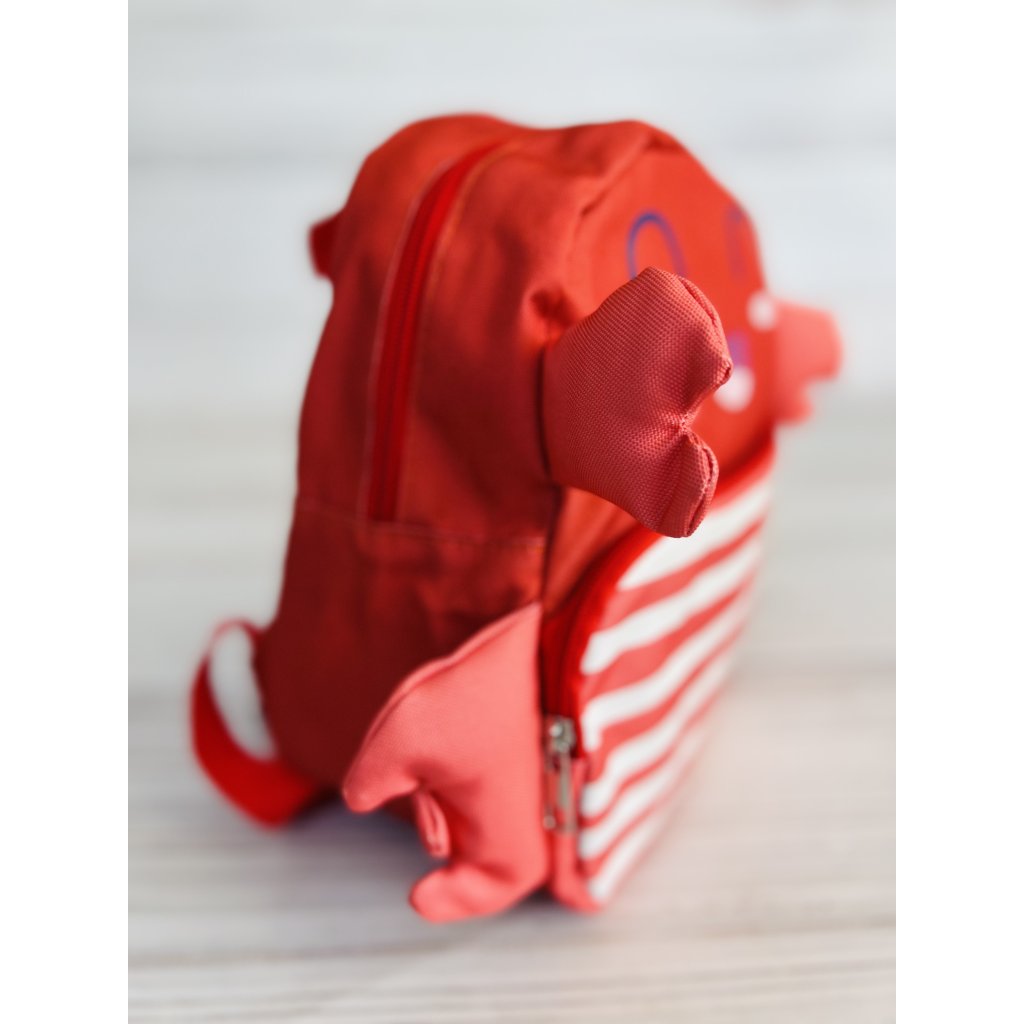 Batoh disponuje veľkým hlavným otvorom na zips pre bezpečné uloženie väčších vecí, vnútorným vreckom na maličkosti a menším predným vreckom na zips pre drobné predmety. Nastaviteľné ramenné popruhy zaručujú pohodlné nosenie, a veselý dizajn kraba s jasnými farbami zaujme každé dieťa.