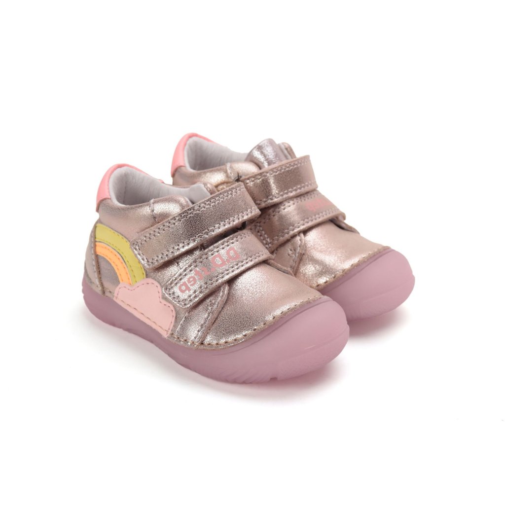 KLASICKÉ, ORTOPEDICKÉ: Topánky sú mierne vystužené, s tvarovanou ortopedickou vložkou. Každý produkt D.D.Step je vyrobený z pravej, kvalitnej hovädzej kože, aby sa zabezpečilo najlepšie prispôsobenie detskej nohe. Predná časť topánky je navrhnutá tak, aby chránila prsty, umožnila ich správny rast a zároveň zvýšila odolnosť obuvi. Formovaná výstuha poskytuje oporu a dlhotrvajúce spevnenie v oblasti päty. PVC výstuž je umiestnená medzi podšívkou a zvrškom, takže sa priamo nedotýka nohy, ale správne fixuje pätovú kosť.