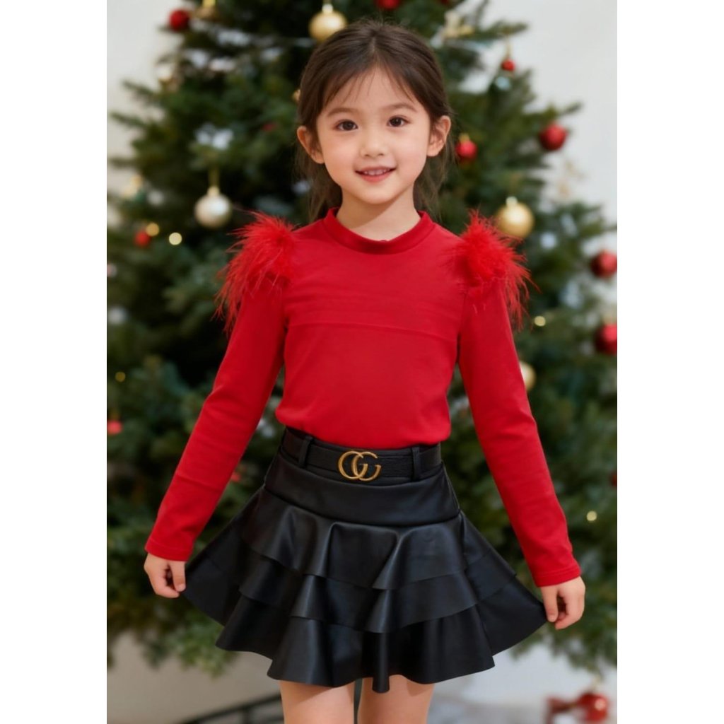 Dievčenská kožená sukňa 2v1 s volánikmi