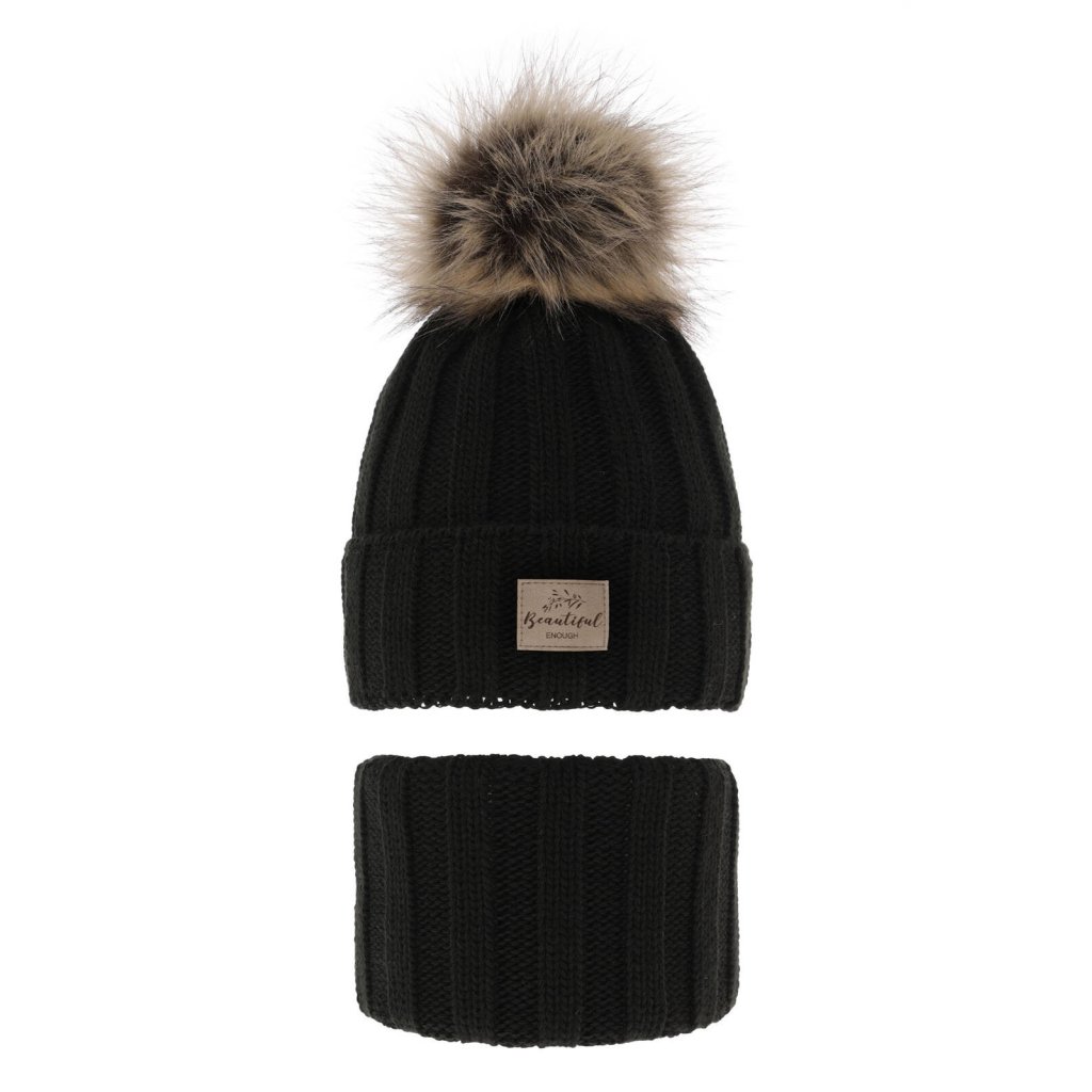 Dievčenská pletená zimná čiapka s nákrčníkom