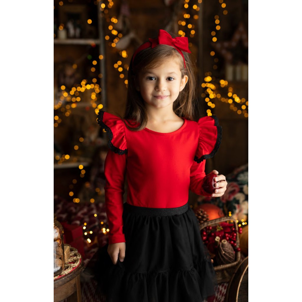 Dievčenské bavlnené vianočné tričko s volánikmi