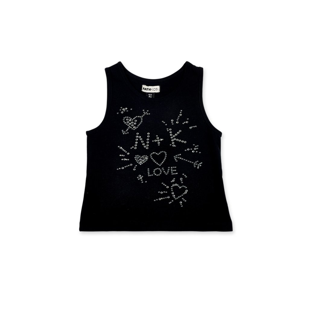 Dievčenský čierny letný top s kamienkami prináša jemný lesk a pohodlný letný strih. Skvelo doplní každý outfit a je príjemný na nosenie počas teplých dní.