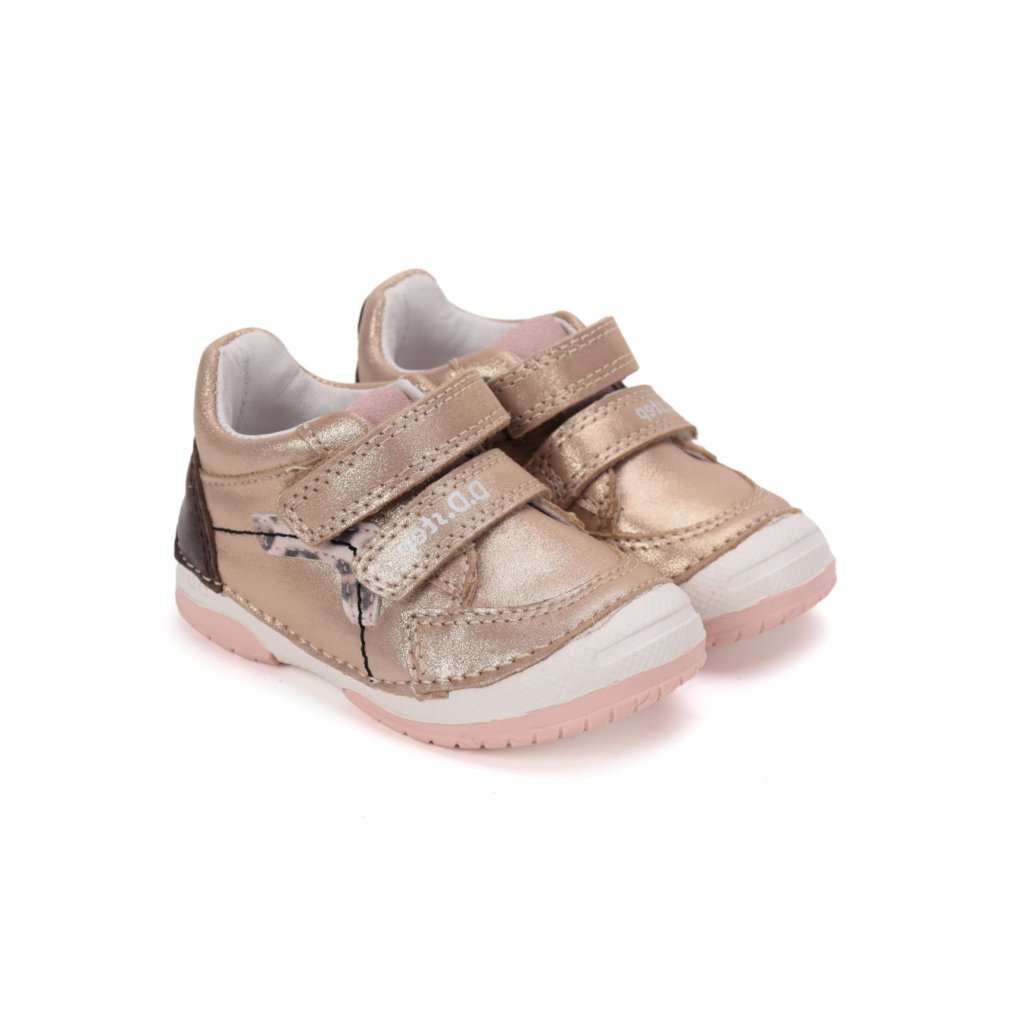 KLASICKÉ, ORTOPEDICKÉ: Topánky sú mierne vystužené, s tvarovanou ortopedickou vložkou. Každý produkt D.D.Step je vyrobený z pravej, kvalitnej hovädzej kože, aby sa zabezpečilo najlepšie prispôsobenie detskej nohe. Predná časť topánky je navrhnutá tak, aby chránila prsty, umožnila ich správny rast a zároveň zvýšila odolnosť obuvi. Formovaná výstuha poskytuje oporu a dlhotrvajúce spevnenie v oblasti päty. PVC výstuž je umiestnená medzi podšívkou a zvrškom, takže sa priamo nedotýka nohy, ale správne fixuje pätovú kosť.