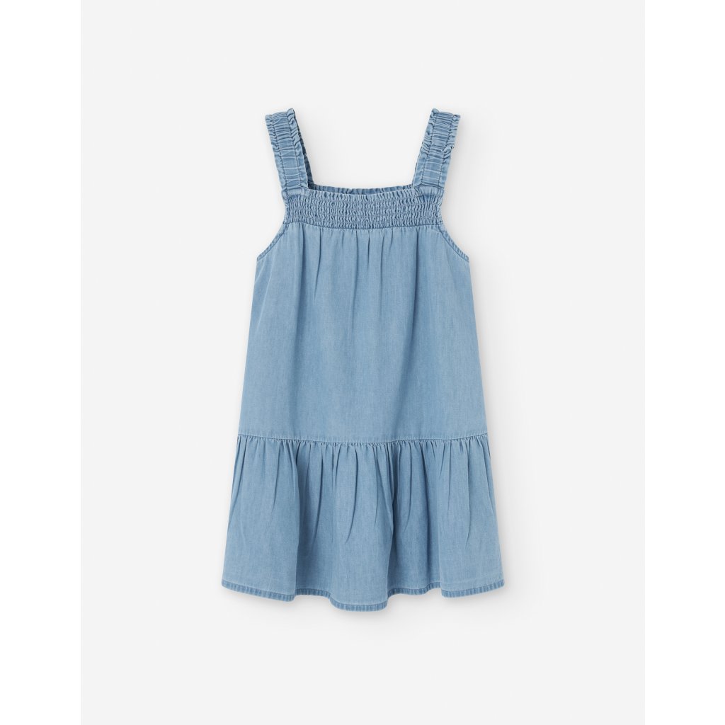 Štýlové a pohodlné šaty pre malé slečny, ideálne na teplé dni. Rifľový denim vzhľad pôsobí moderne a nadčasovo, zatiaľ čo ramienka a tunikový strih zabezpečujú voľnosť pohybu a komfort počas celého dňa.
