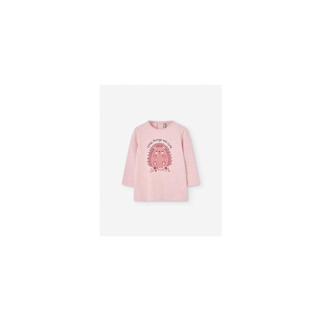 Dievčenské tričko s dlhým rukávom s potlačou - Baby pink