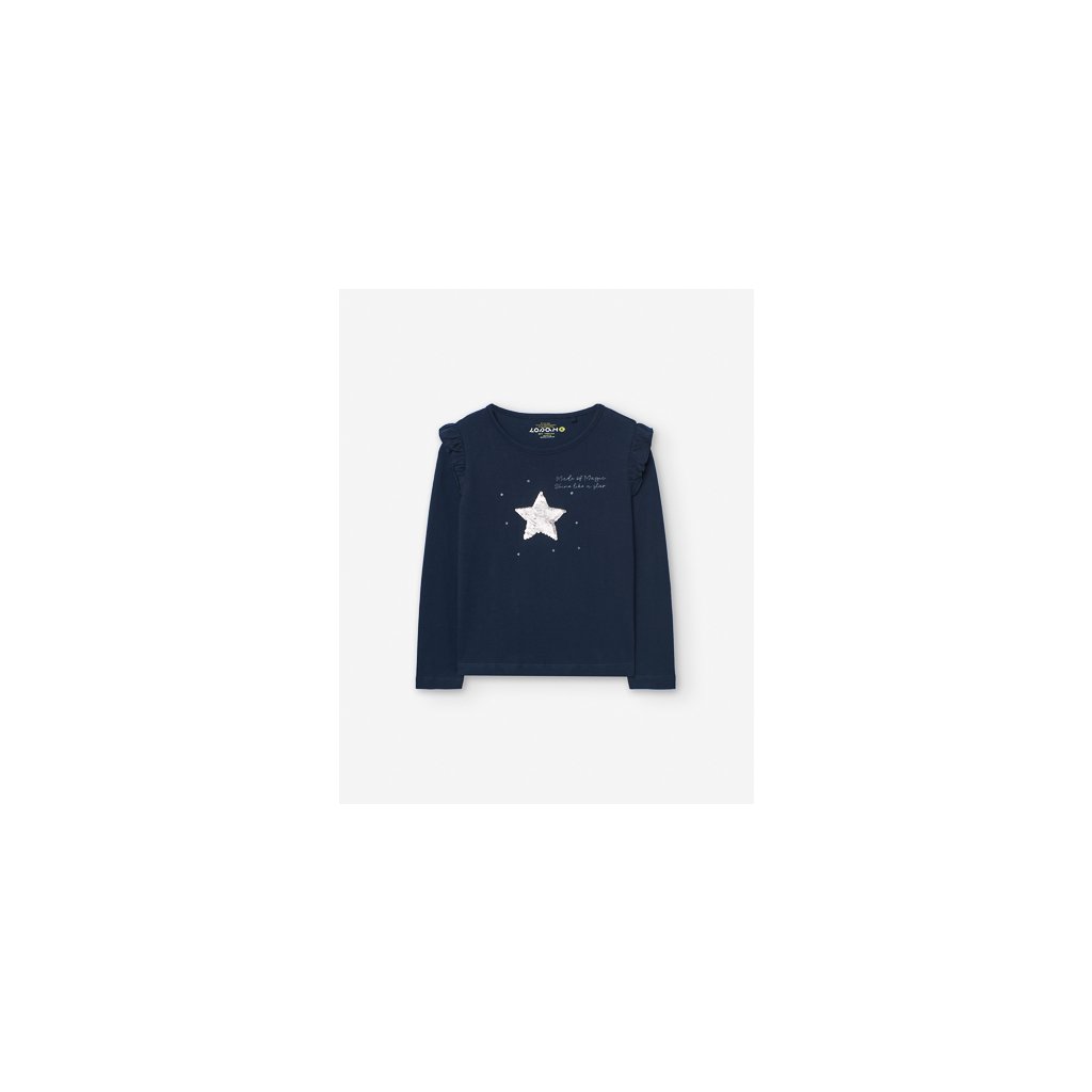 Dievčenské tričko s dlhým rukávom s potlačou - Modrá