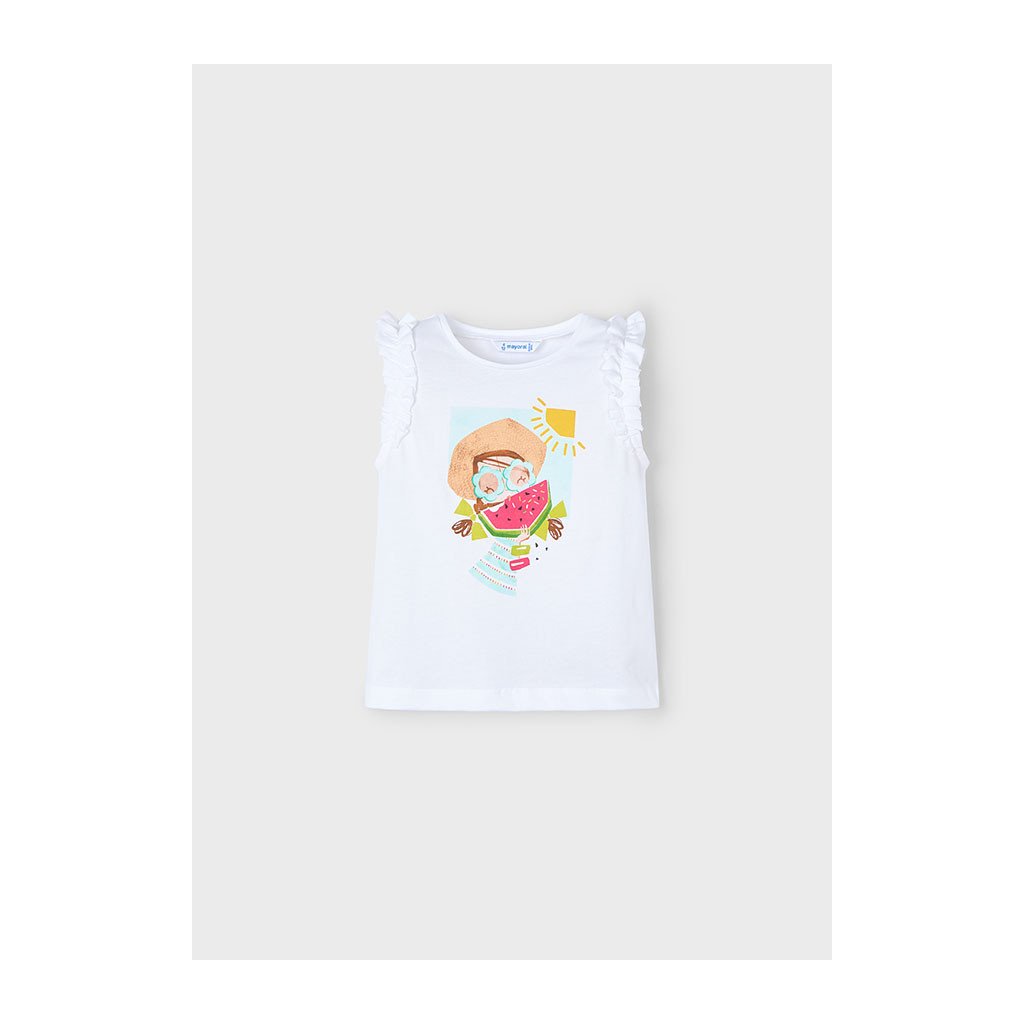 Bavlnené dievčenské biele tričko bez rukávov s potlačou dievčaťa