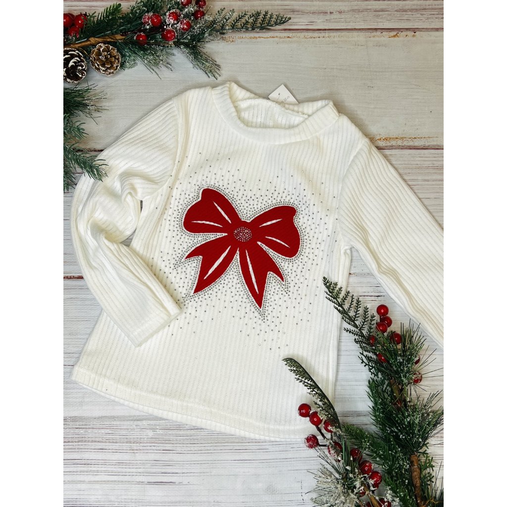 Dievčenské vrúbkované tričko s mašľou a kamienkami