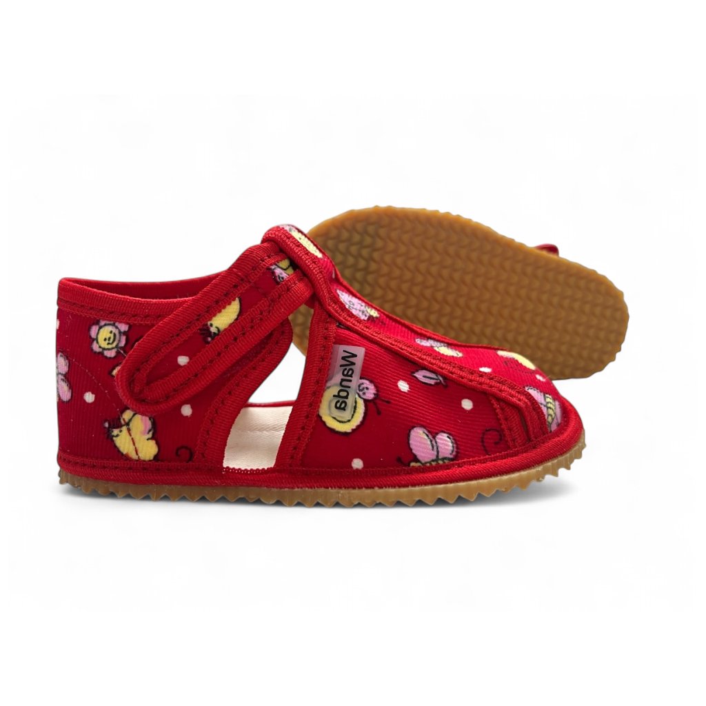 Naše detské papuče Wanda sú vyrobené zo špeciálneho textilného materiálu, ktorý je príjemný na dotyk a zabezpečuje pohodlné nosenie po celý deň. Tieto sandálikové papuče majú mäkkú a odolnú podošvu, ktorá chráni nohy vašich detí pri každom kroku. Zapínanie je riešené pomocou suchého zipsu, čo umožňuje rýchle a jednoduché obúvanie a vyzúvanie. Detské nohy sú v týchto papučiach podporované a zároveň majú dostatok priestoru na pohyb.