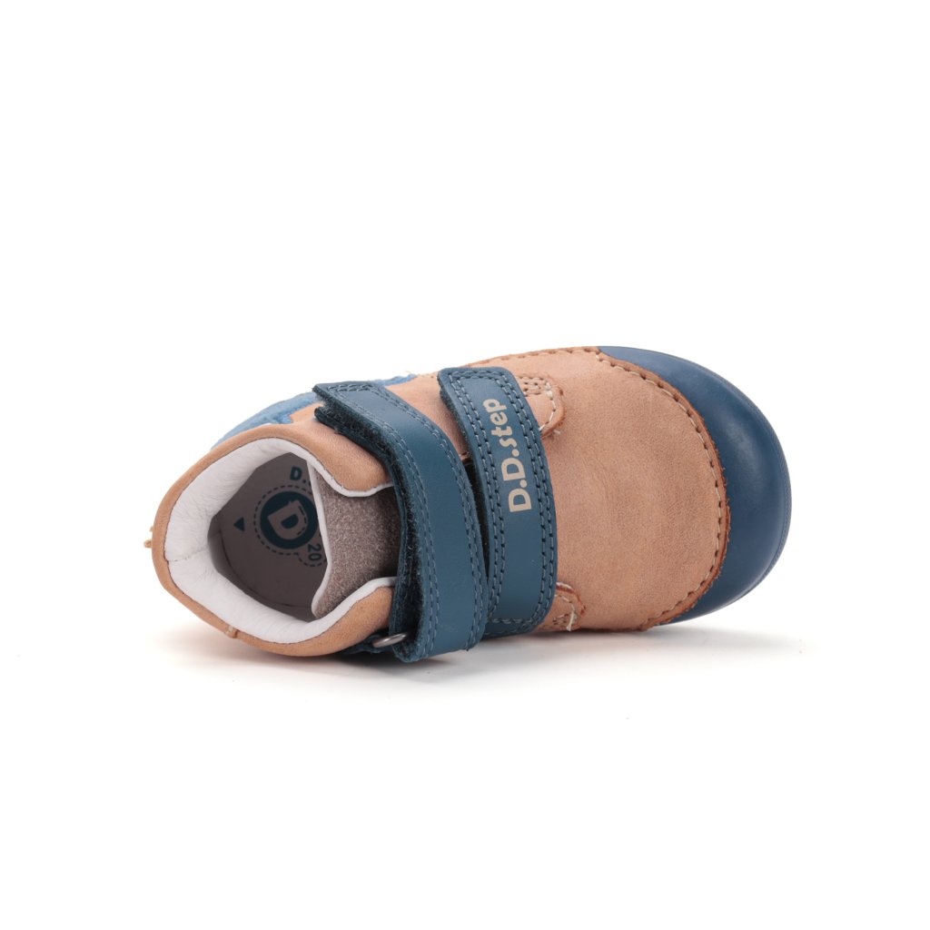 KLASICKÉ, ORTOPEDICKÉ: Topánky sú mierne vystužené, s tvarovanou ortopedickou vložkou. Každý produkt D.D.Step je vyrobený z pravej, kvalitnej hovädzej kože, aby sa zabezpečilo najlepšie prispôsobenie detskej nohe. Predná časť topánky je navrhnutá tak, aby chránila prsty, umožnila ich správny rast a zároveň zvýšila odolnosť obuvi. Formovaná výstuha poskytuje oporu a dlhotrvajúce spevnenie v oblasti päty. PVC výstuž je umiestnená medzi podšívkou a zvrškom, takže sa priamo nedotýka nohy, ale správne fixuje pätovú kosť.