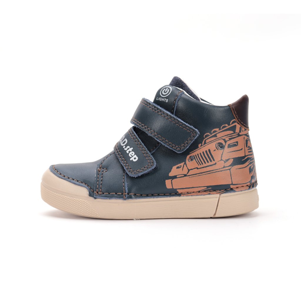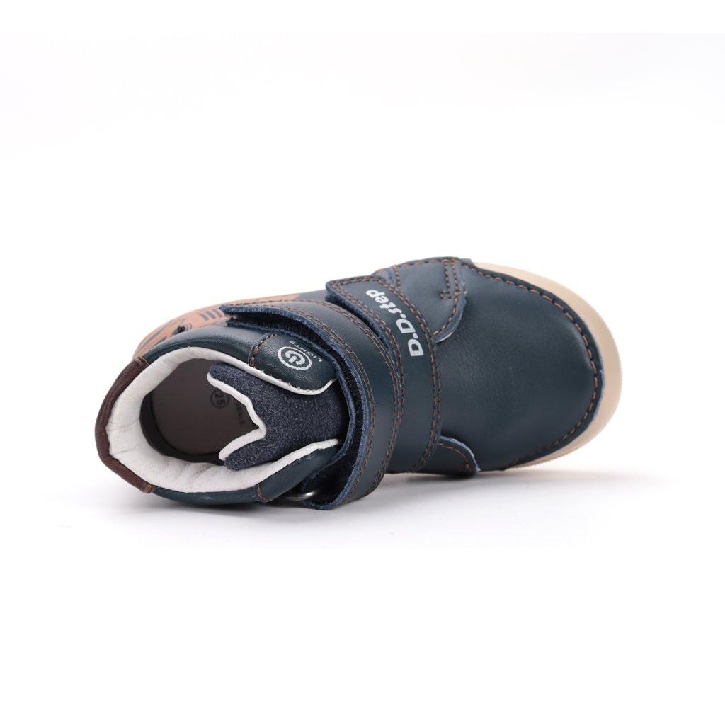 KLASICKÉ, ORTOPEDICKÉ: Topánky sú mierne vystužené, s tvarovanou ortopedickou vložkou. Každý produkt D.D.Step je vyrobený z pravej, kvalitnej hovädzej kože, aby sa zabezpečilo najlepšie prispôsobenie detskej nohe. Predná časť topánky je navrhnutá tak, aby chránila prsty, umožnila ich správny rast a zároveň zvýšila odolnosť obuvi. Formovaná výstuha poskytuje oporu a dlhotrvajúce spevnenie v oblasti päty. PVC výstuž je umiestnená medzi podšívkou a zvrškom, takže sa priamo nedotýka nohy, ale správne fixuje pätovú kosť.