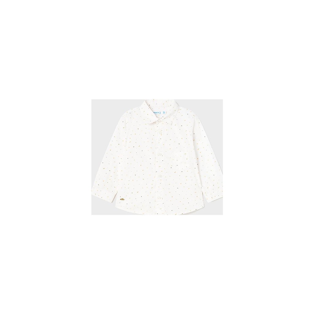 Chlapčenská košeľa pre najmenších značky Mayoral s dlhým rukávom je praktickým a štýlovým kúskom do každodenného aj slávnostného outfitu. Košeľa je vyrobená zo 100 % bavlny, ktorá je jemná, priedušná a príjemná na detskú pokožku. Dizajn dopĺňajú jemné farebné bodky a náprsné vrecúško, ktoré pridáva košeli hravý a zároveň elegantný vzhľad.