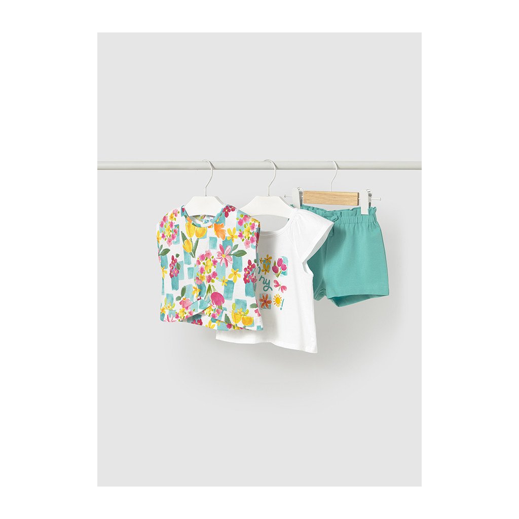 Praktický a štýlový 3-dielny letný set MAYORAL, ktorý obsahuje jedny pohodlné šortky a dve bavlnené tričká v zladených farbách alebo vzoroch. Tričká sú vyrobené z mäkkej, priedušnej bavlny – ideálnej na teplé dni. Každé z nich má vlastný dizajn, takže deti môžu outfit obmieňať podľa nálady.