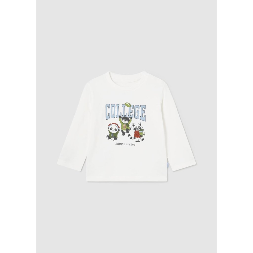Tričko s dlhým rukávom je zdobené veselou potlačou s detským motívom, ktorá dodáva hravý a zábavný vzhľad. Moderný strih a jednoduchý dizajn sa ľahko kombinuje s nohavicami alebo teplákmi. Vhodné pre deti do 3 rokov a ideálne na každodenné nosenie.