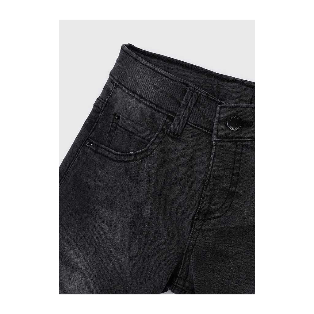 Štýlové chlapčenské rifle Mayoral kombinujú pohodlie a praktickosť. Zapínanie na cvok umožňuje jednoduché a rýchle obliekanie, zatiaľ čo vnútorná gumička s gombíkmi umožňuje presne nastaviť obvod pása podľa veľkosti dieťaťa, čím rifle lepšie držia a rastú s dieťaťom.