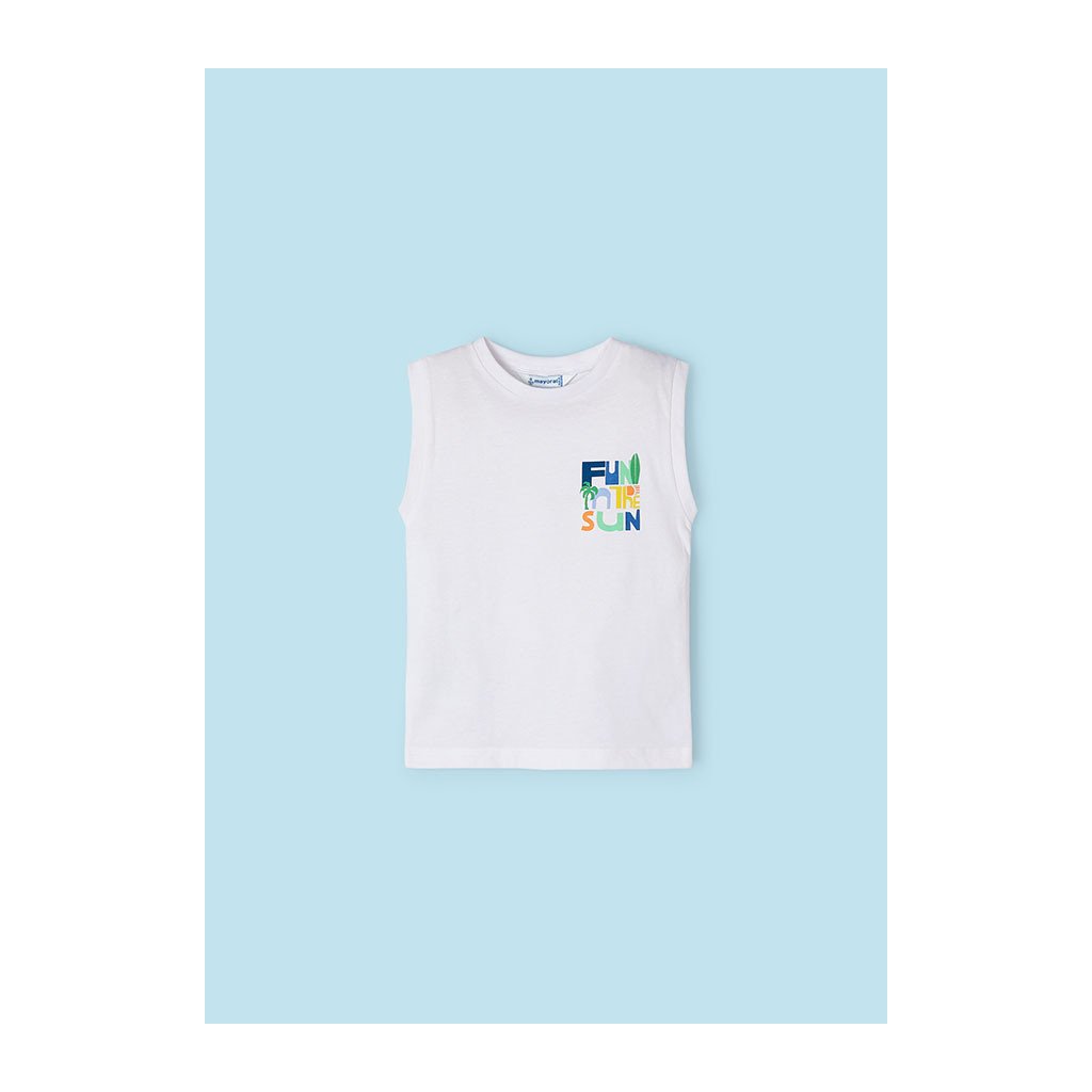 Ľahučké a pohodlné chlapčenské tričko bez rukávov od značky Mayoral, ideálne na teplé letné dni. Vyrobené zo 100 % kvalitnej bavlny, ktorá je mäkká, priedušná a príjemná k detskej pokožke. Praktický strih bez rukávov zaručuje maximálny komfort a voľnosť pohybu pri hre aj športovaní.