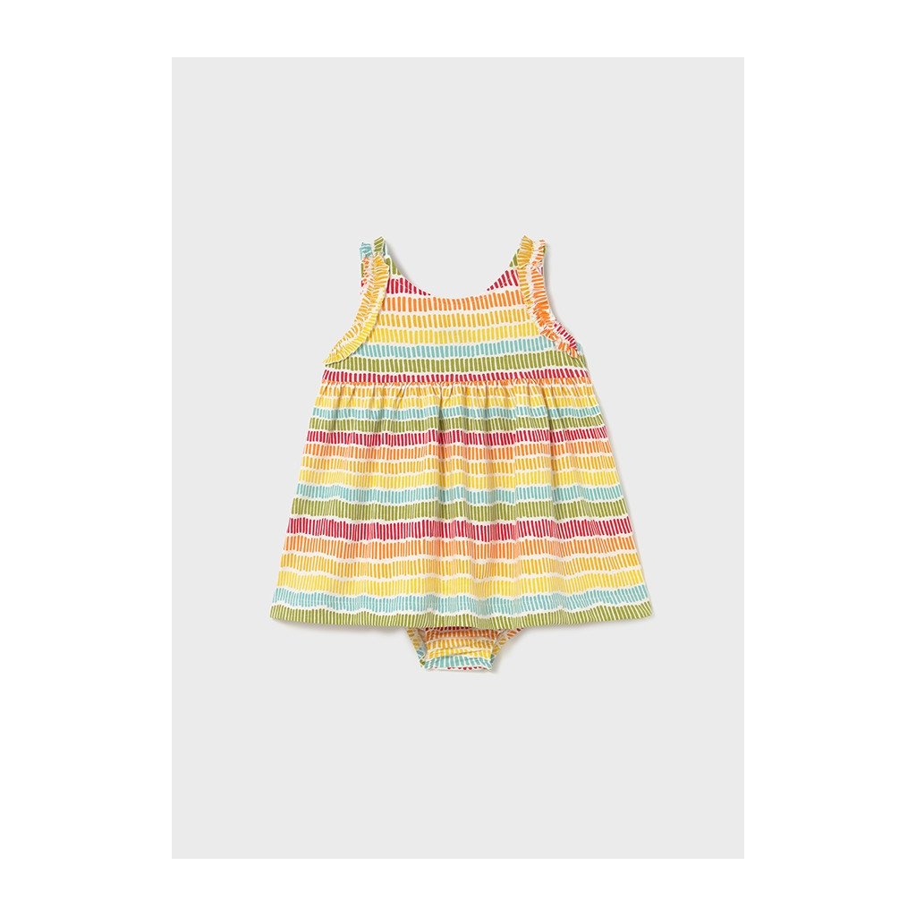 Štýlový a pohodlný letný set od značky MAYORAL. Jemne prúžkové šaty pôsobia nežne a hravo, zatiaľ čo voľný strih zabezpečuje komfort a voľnosť pohybu. Súčasťou setu sú aj praktické nohavičky, ktoré dopĺňajú šaty a poskytujú pohodlie počas celého dňa.