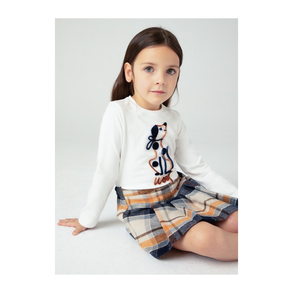 MAYORAL dievčenské bavlnené tričko so psíkom – dlhý rukáv – White