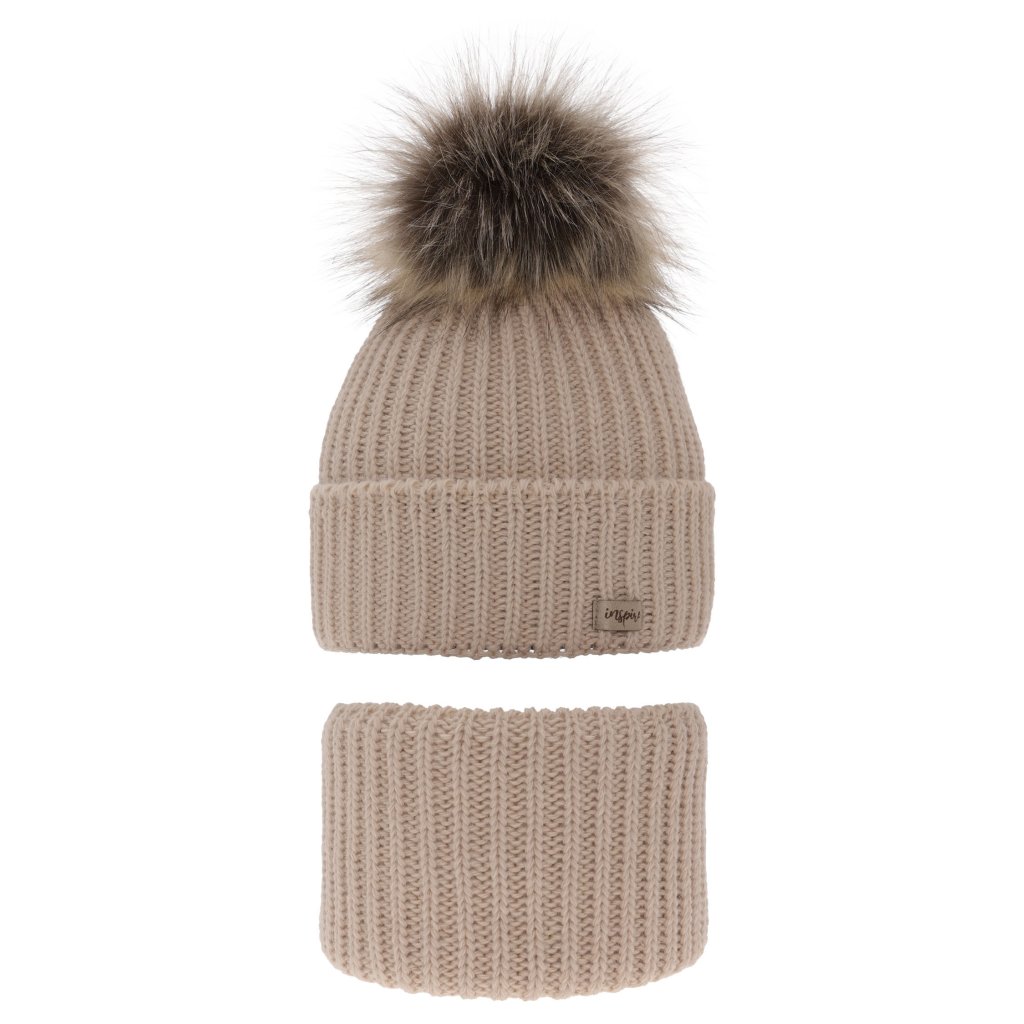 Zimná čiapka s huňatým brmbolcom a nákrčníkom