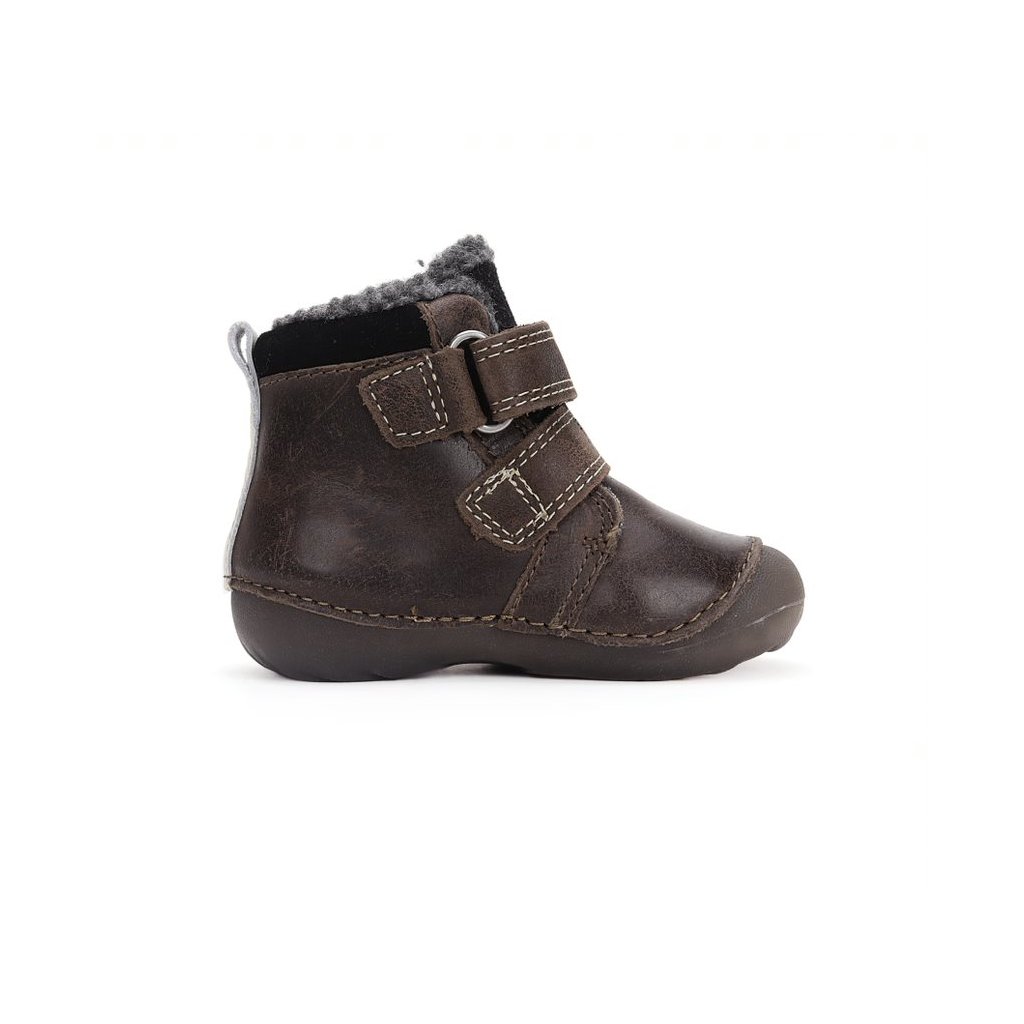 Obuv z radu 015 je ideálnou voľbou pre prvé kroky dieťaťa počas prvých zím. Flexibilná podrážka je alternatívou barefoot obuvi, podporuje prirodzený pohyb chodidla, kvalitná koža a kožušinová podšívka zabezpečujú pohodlie a suché nožičky, a praktický suchý zips uľahčuje obúvanie aj malým detičkám. Vhodné pre normálnu až užšiu nôžku.